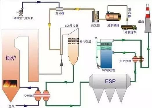 在金屬催化劑作用下,以NH3作為還原劑,將NOx還原成N2和H2O。NH3不和煙氣中的殘余的O2反應(yīng),而如果采用H2、CO、CH4等還原劑,它們?cè)谶€原NOx的同時(shí)會(huì)與O2作用,因此稱這種方法為“選擇性”。